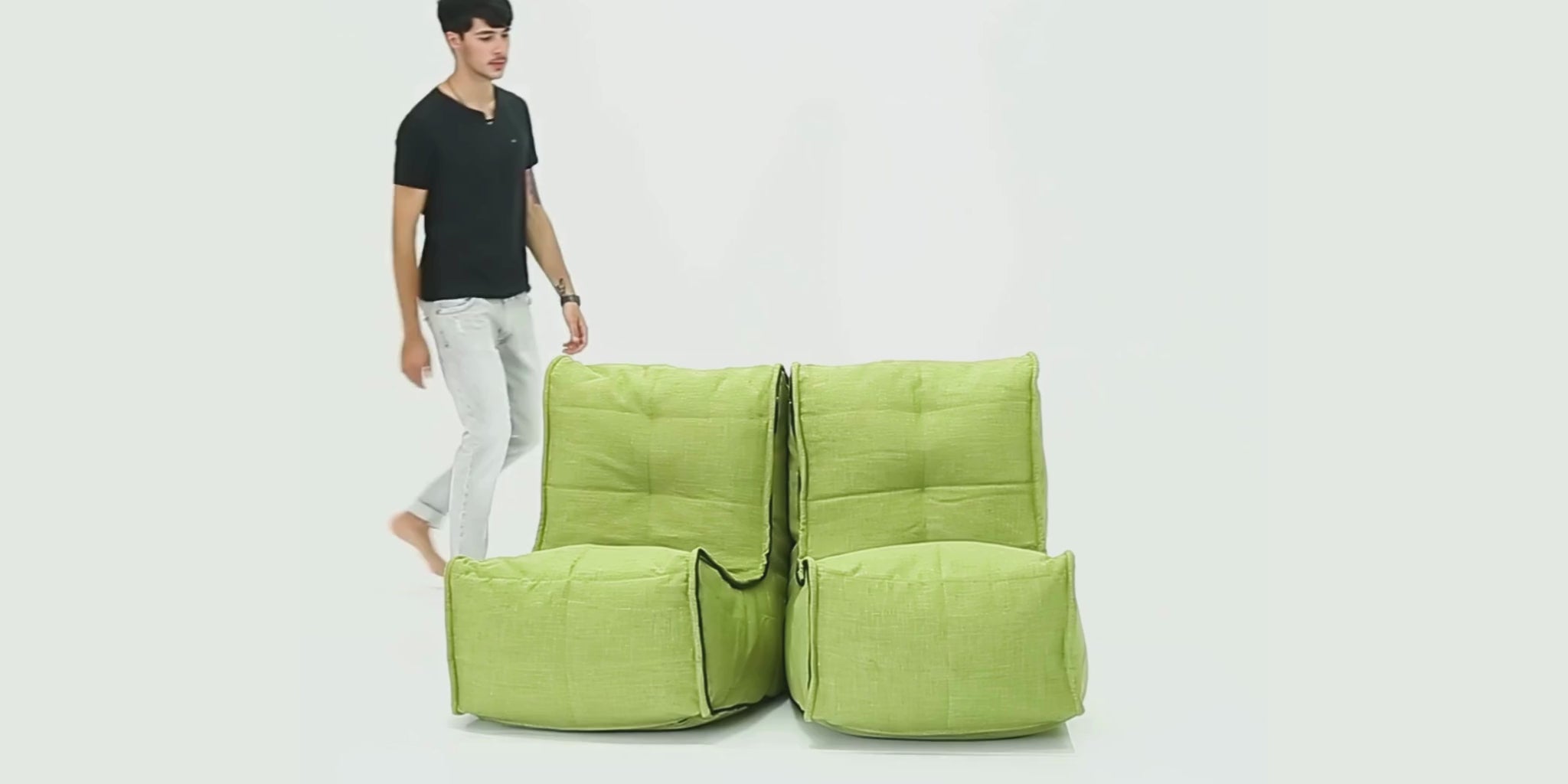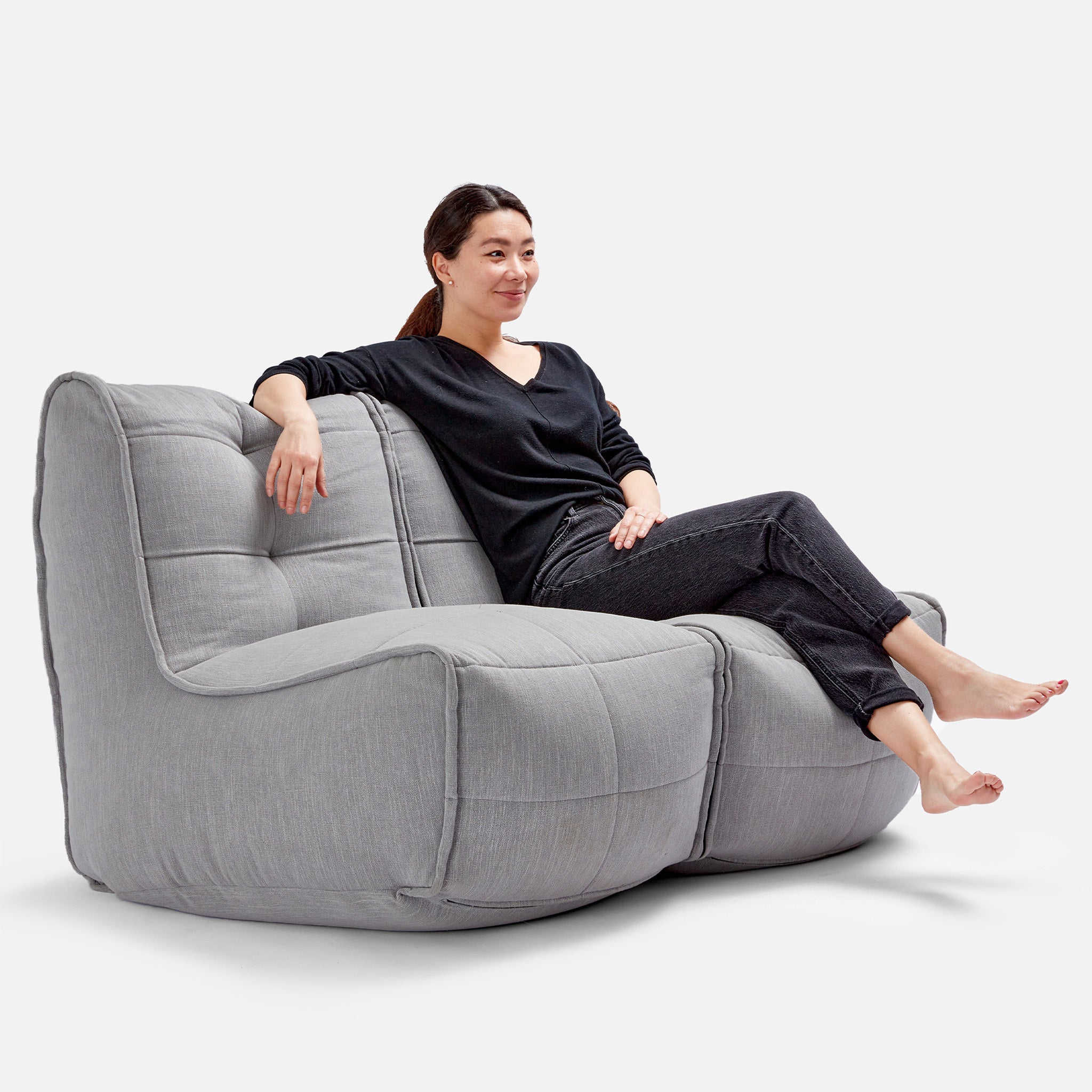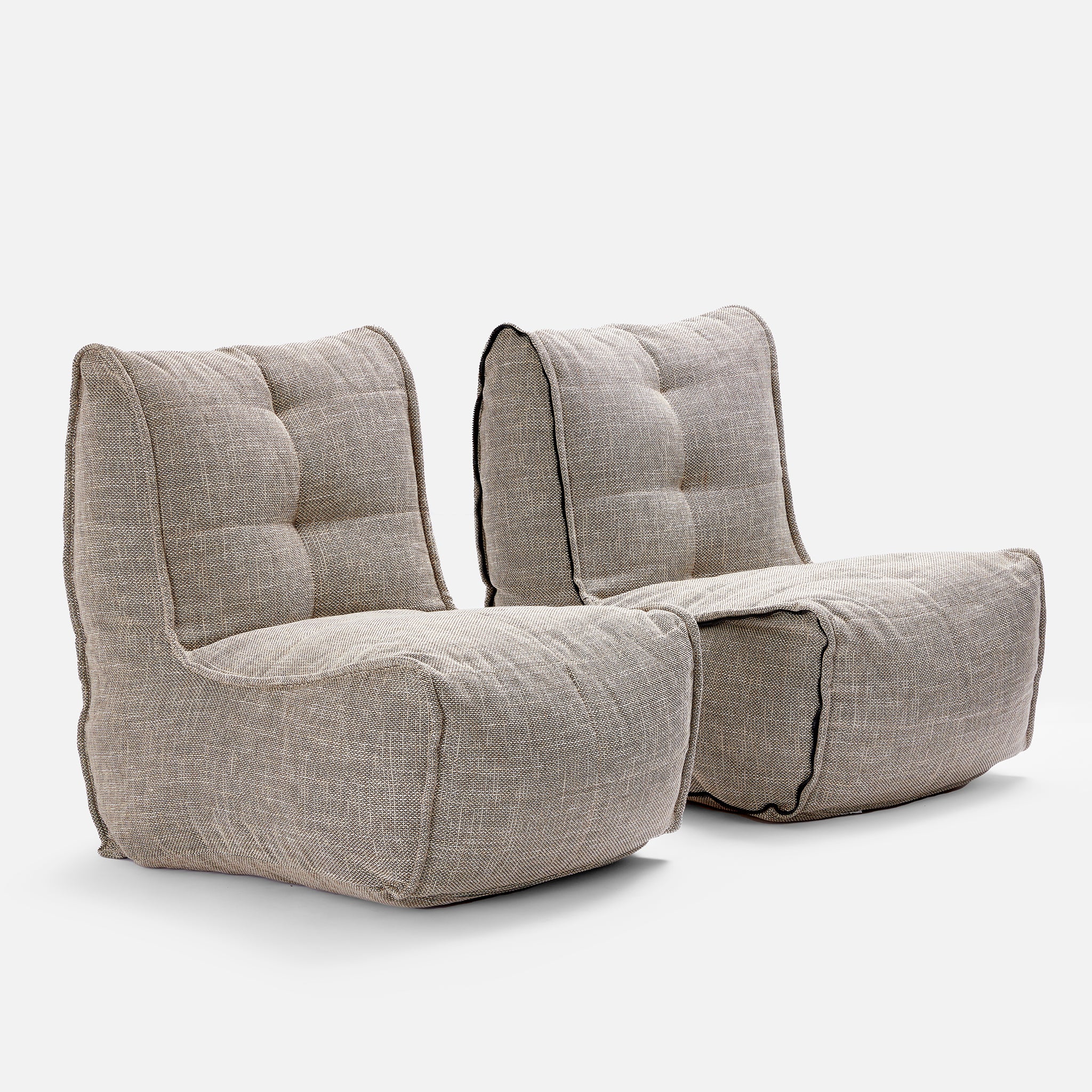 Die Designer von ambient lounge® haben bereits 2008 die innenliegenden Gummizüge eingeführt. Erleben Sie maximalen Komfort mit dem Twin Couch; gefertigt aus hochwertigen und weichen Stoffen, mit bequemer Sitzhöhe, Rückenlehne und einem vielseitigen Design, das sich per Reißverschluss zusammen- oder trennen lässt.