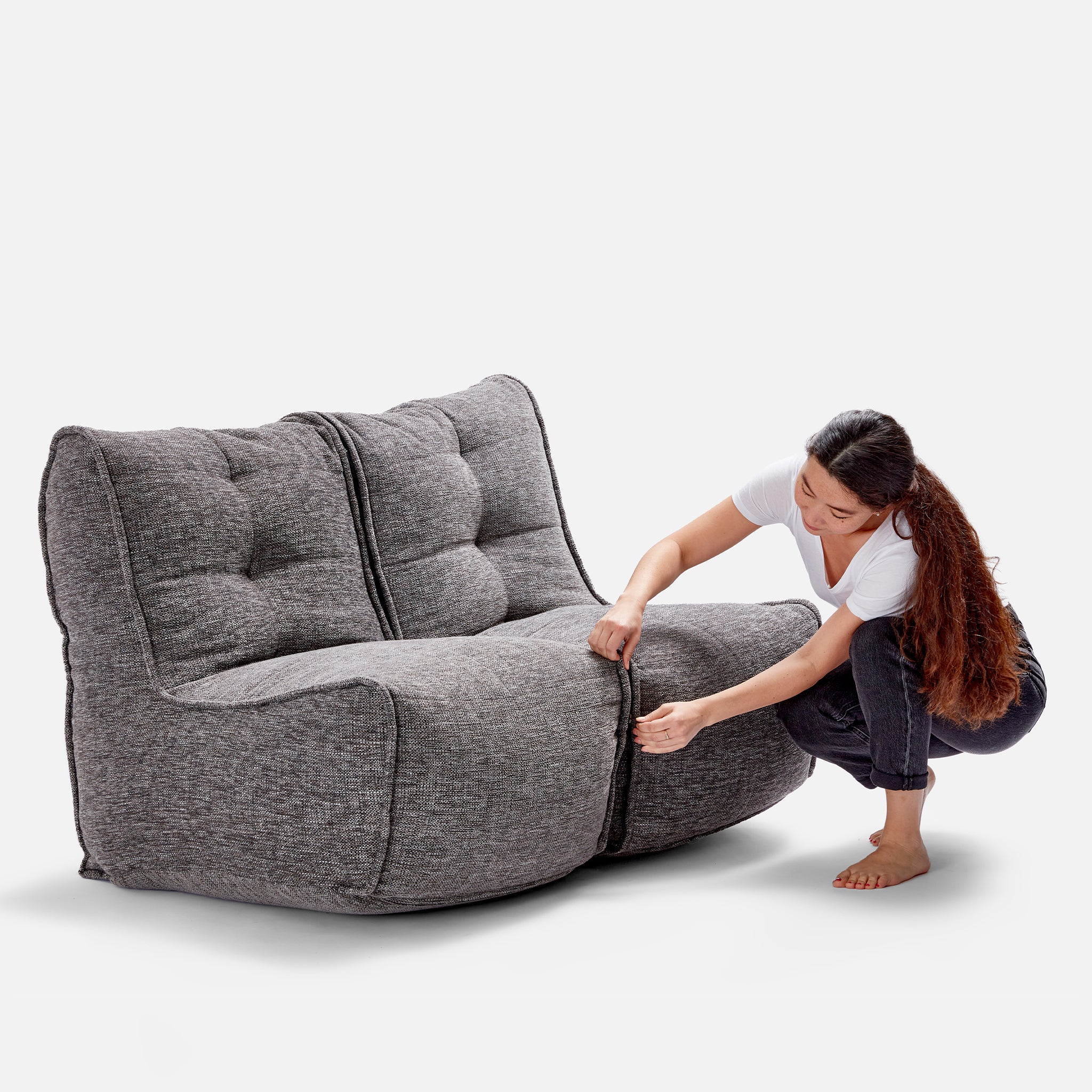 Das Twin Couch ist eine hochwertige, formstabile Sitzmöbellösung von Ambient Lounge® für den Innenbereich. Es bietet zwei Sitzplätze, Rückenlehne und ein patentiertes Funnelweb®-Befüllsystem mit Reißverschluss und Auswurföffnung für einfaches Nachfüllen und Reinigen.