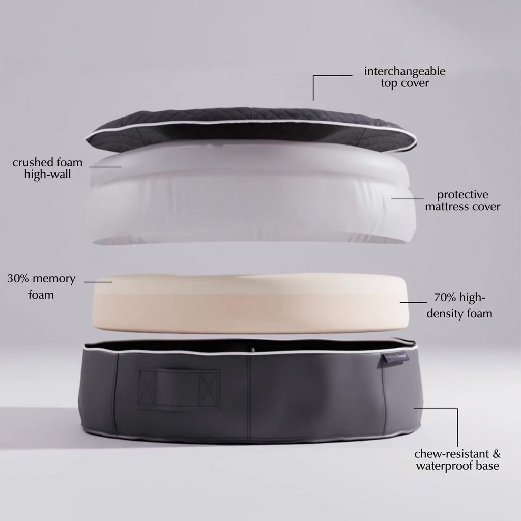 Regala al tuo cane il lusso che merita con il materasso per cani in schiuma a rimbalzo medio di Ambient Lounge. Progettato per offrire il massimo supporto e relax , questo letto interamente in schiuma è composto per il 70% da schiuma ortopedica ad alta densità e per il 30% da memory foam , garantendo un sollievo dalla pressione e un supporto articolare superiori, perfetti per cani di tutte le età, in particolare per i cani anziani o le razze predisposte a problemi alle anche e alle articolazioni.